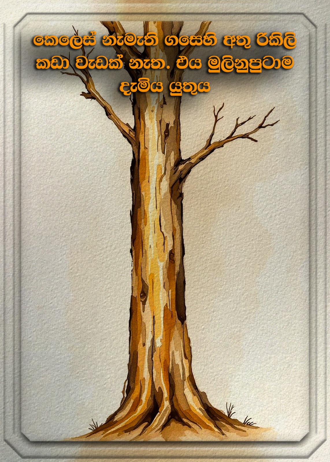 - එම නිසා ඉතා ඉක්මනින් ලැබුණු අවස්ථාවෙන් ප්රයෝජන ගෙන සසරින් මිදීමට වහ වහා කටයුතු කළ යුතුය